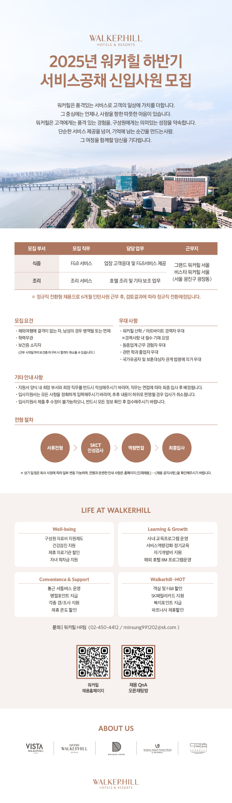 워커힐호텔 2025년 하반기 서비스공채 안내